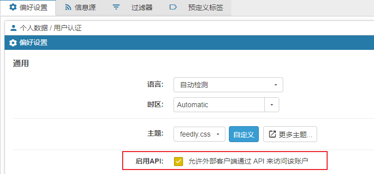 登录 TTRSS,打开偏好设置,根据自己的需求进行配置
